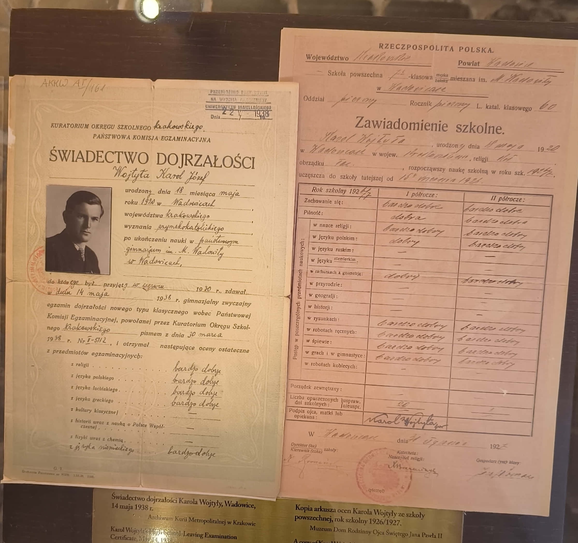 1938. godine Karol je završio svoje srednjoškolsko obrazovanje i položio maturu. Drugim riječima, rigorozne nacionalne ispite na toj razini. Gimnazija u Wadowicama predstavljala je visok standard podučavanja i postignuća te se ubrajala među najbolje u regiji Małopolska. Od 49 mladića koji su započeli u istoj klasi kao i Karol, 17 ih je stiglo do mature. Polagao je ispite iz vjeronauka i četiri jezika: poljskog, njemačkog, latinskog i grčkog, dobivši ocjene vrlo dobar iz svih pet. Njegove ocjene za sve ostale predmete na kurikulumu bile su jednako visoke.